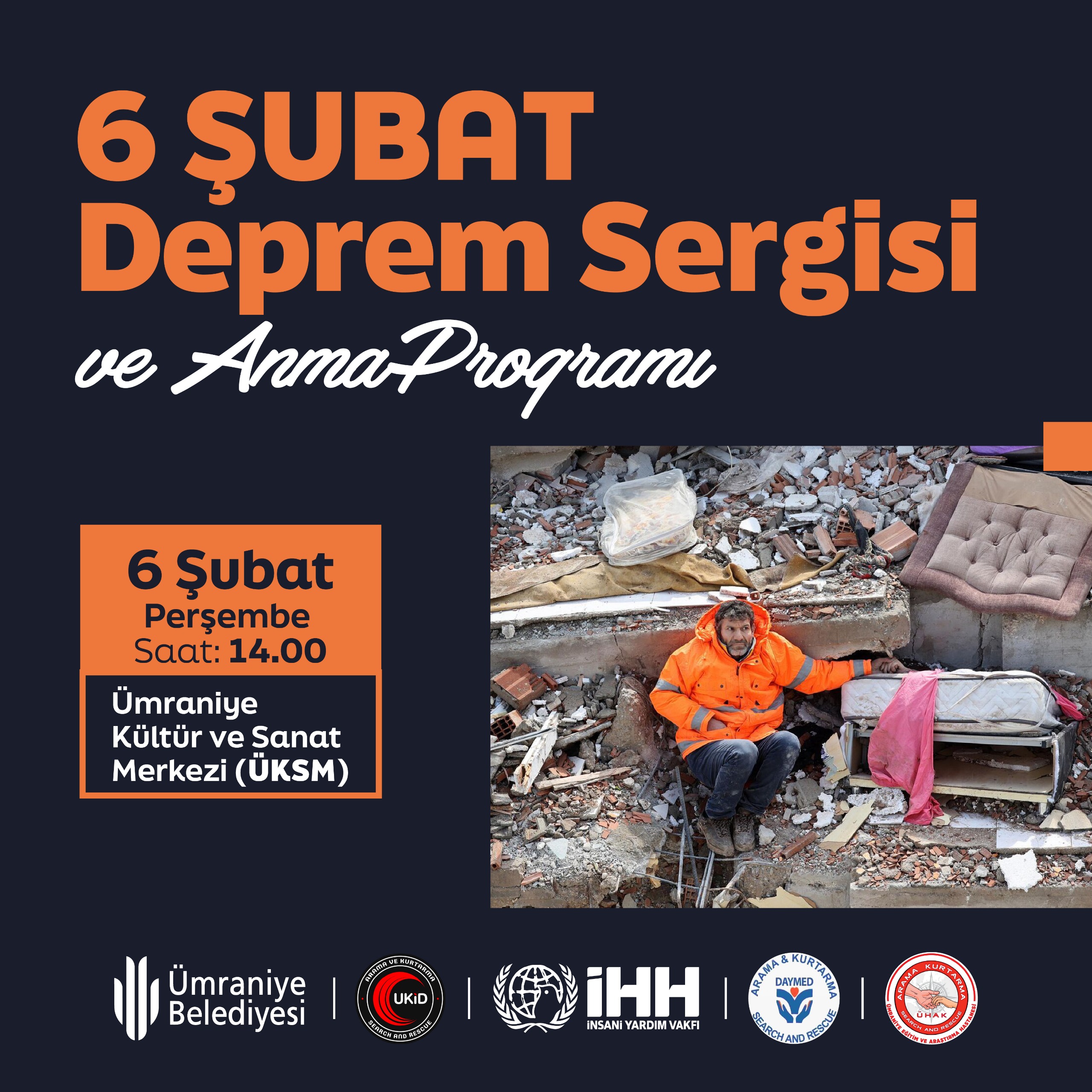 6 Şubat Depreminin yıldönümünde Ümraniye Kültür Sanat Merkezinde Ümraniye Belediyesi ve Ümraniyede faaliyet gösteren arama kurtarma ekipleri ile müştereken düzenleyeceğimiz “6 Şubat Deprem Sergisi ve Anma Programı”na ilgi duyan, vakti ve imkanı müsait olan dostlarımızı davet ediyoruz.